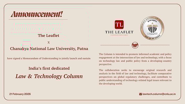 The launch of the Law & Technology Column through the collaboration between The Leaflet and Chanakya National Law University, Patna is not a routine academic initiative. It is a response to a structural transformation already underway.
